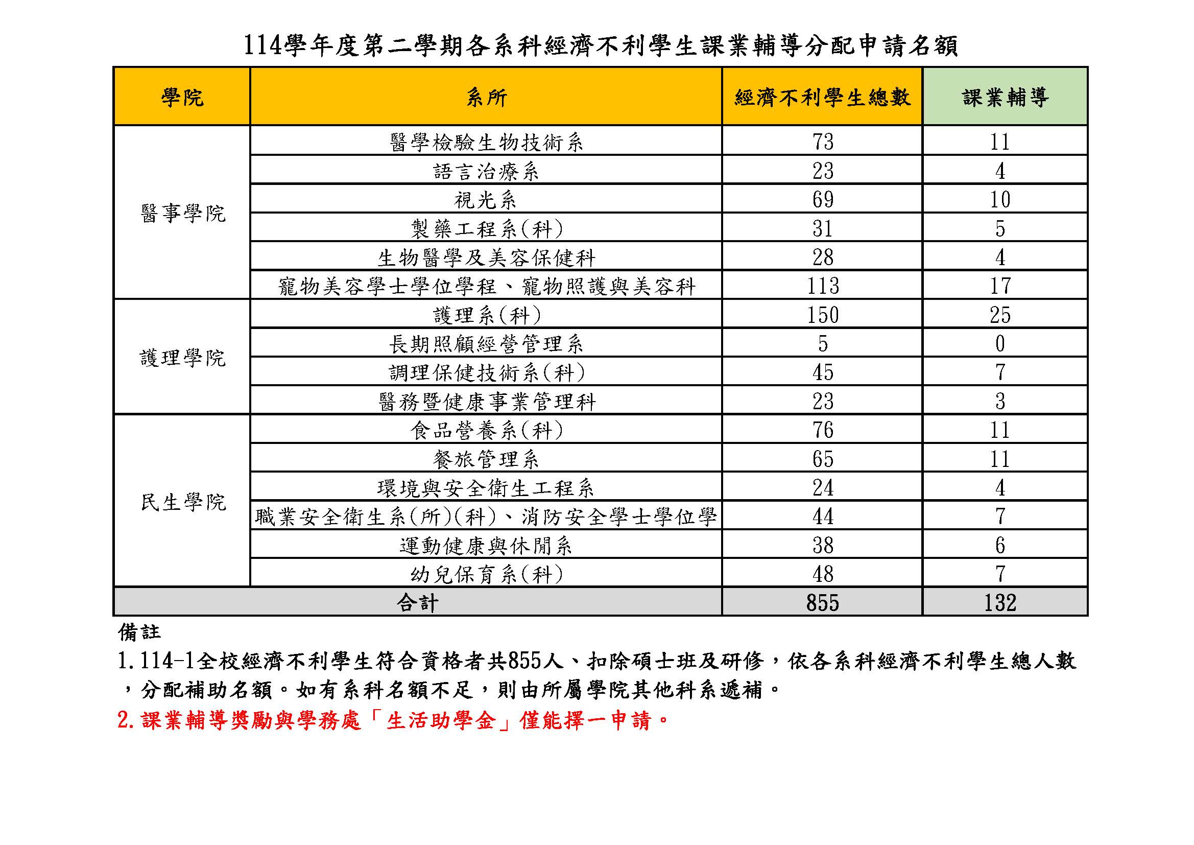 【高教深耕D分項】114-2經濟不利學生課業輔導暨職涯輔導獎勵金申請